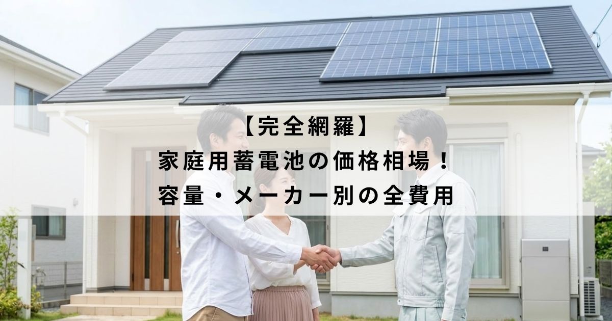 また、ご自宅の環境やメーカーによっても費用は変動するため、より全体的な相場感を知りたい方は、【完全網羅】家庭用蓄電池の価格相場!容量・メーカー別の全費用も参考にしてくださいね。